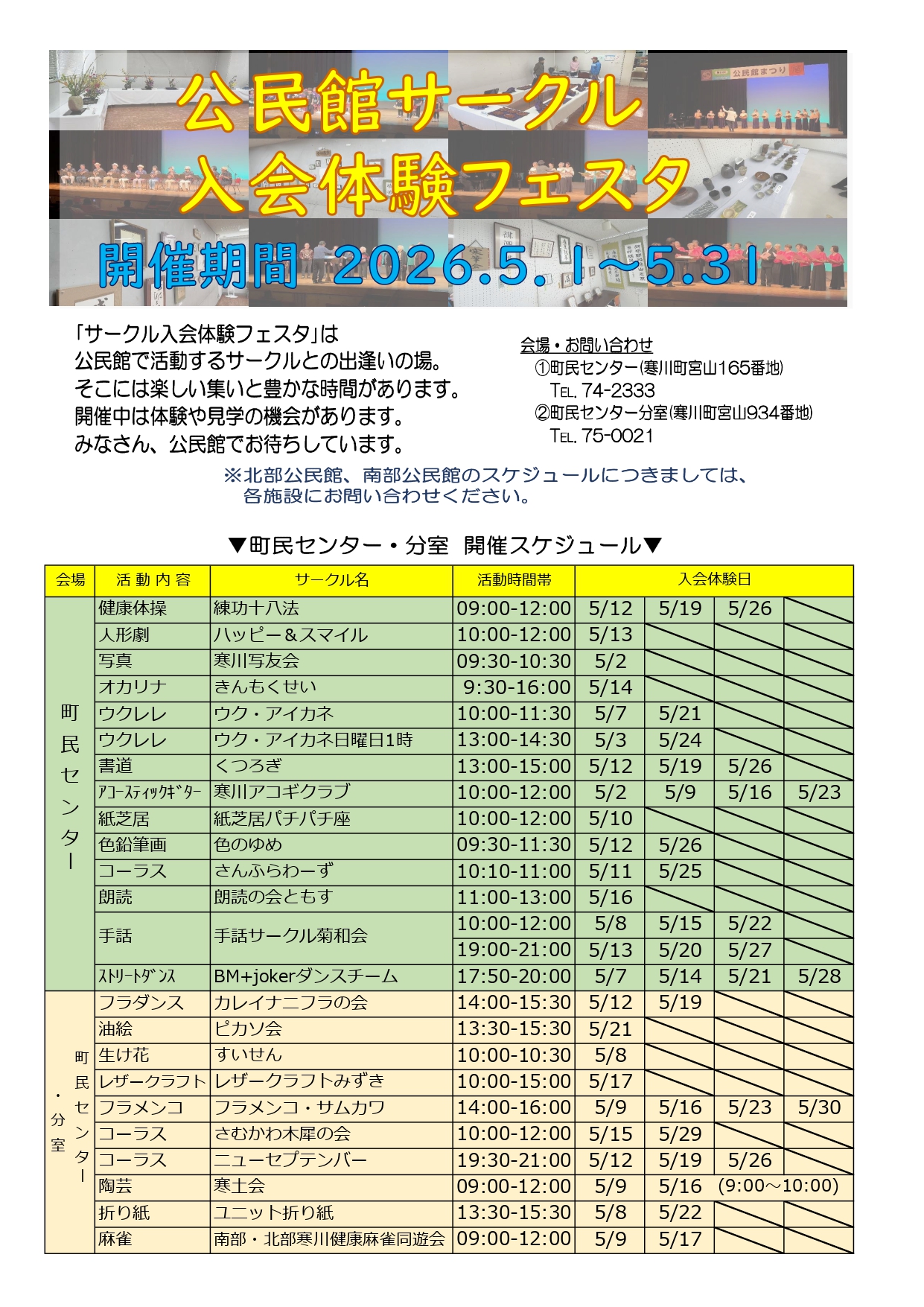 ・E-mail chomin-center@samukawa-c.jp 事務担当 寒川町民センターまで