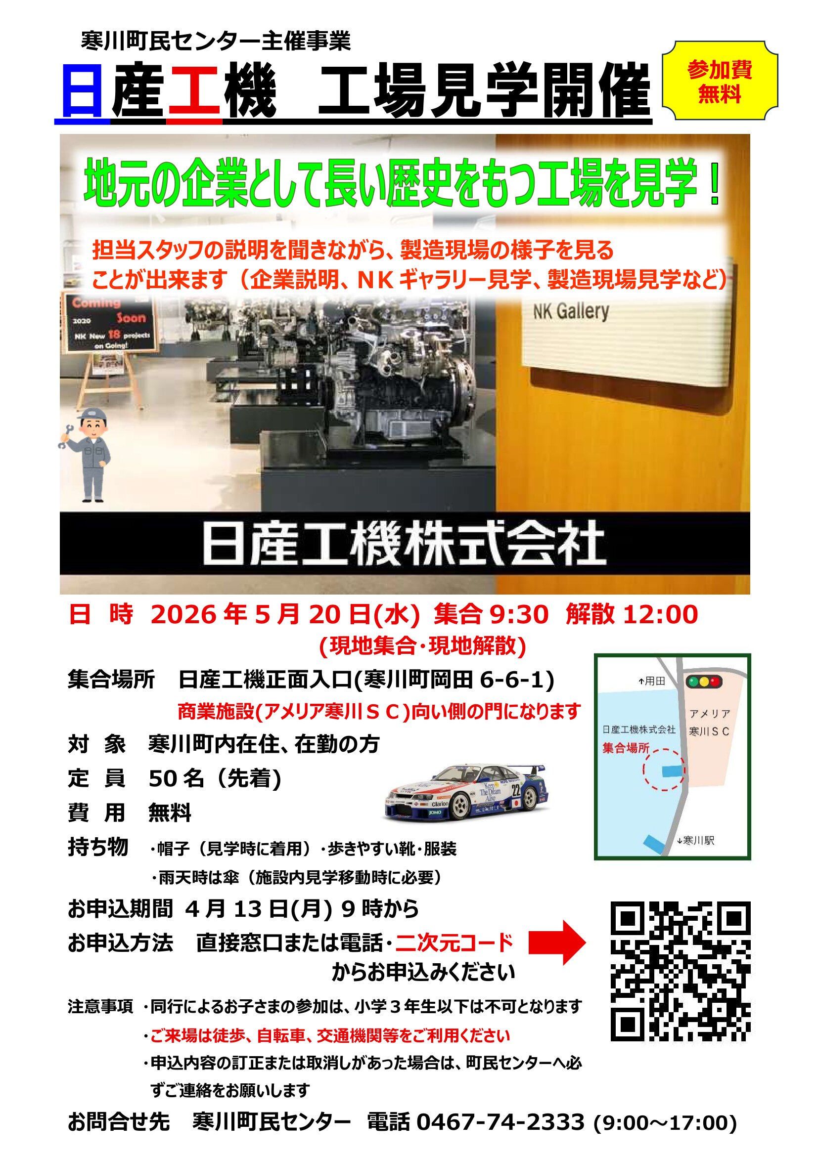 5月20日水 9時30分から12時 日産工機工場正面入口集合